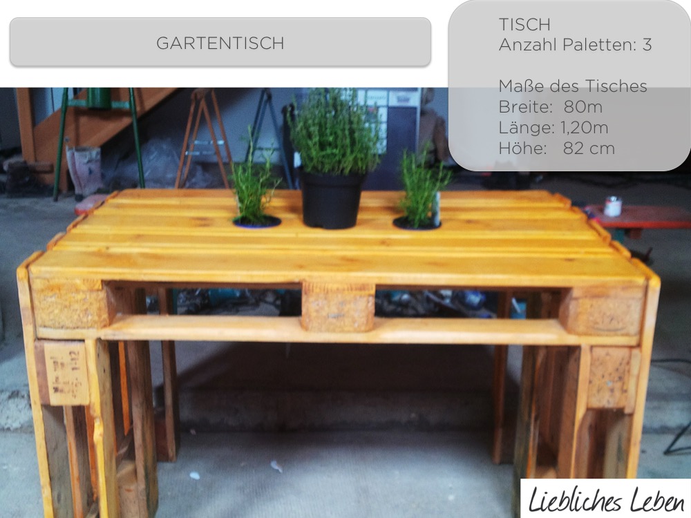 Unser Tisch besteht aus 3 Paletten und hat die Maße 80 x 120 x 82 cm. Er ist sehr stabil und hat einen modernen Look. Wir zeigen dir wie einfach und praktisch es geht.